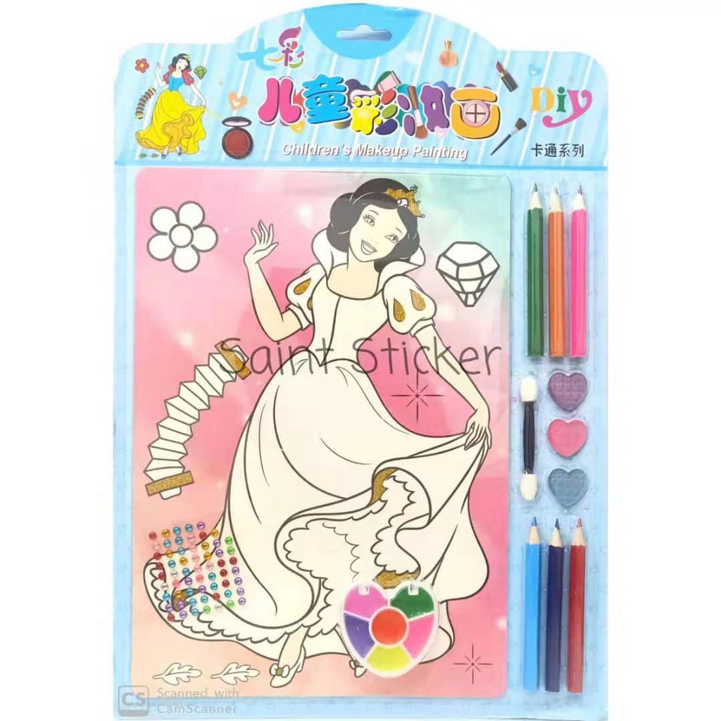 Mainan diy mewarnai gambar princess dengan palet untuk anak tk.